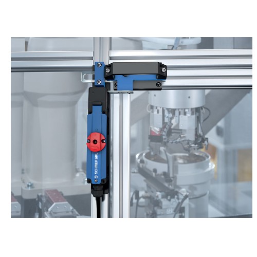 Le nouvel interverrouillage de sécurité AZM150 de Schmersal se caractérise par un design compact, mince et une tête d'actionnement orientable 4x 90°. Avec sa force de verrouillage Fzh de 1.500 N, l'AZM150 peut être combiné avec différents actionneurs pour les situations de montage les plus diverses: un actionneur droit ou coudé pour les protecteurs coulissants ainsi qu'un actionneur articulé réglable pour les protecteurs pivotants. Par ailleurs, lors d'un montage sur les clôtures de sécurité ou sur les protecteurs plus lourds, le système