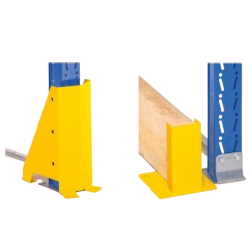Les sabots de protection assurent la sécurité des installations de rayonnages équipées de chariots élévateurs. Les échelles de rayonnages sont ainsi protégées d'éventuels coups ou accrochages. Aucunes soudures, fixation au sol.