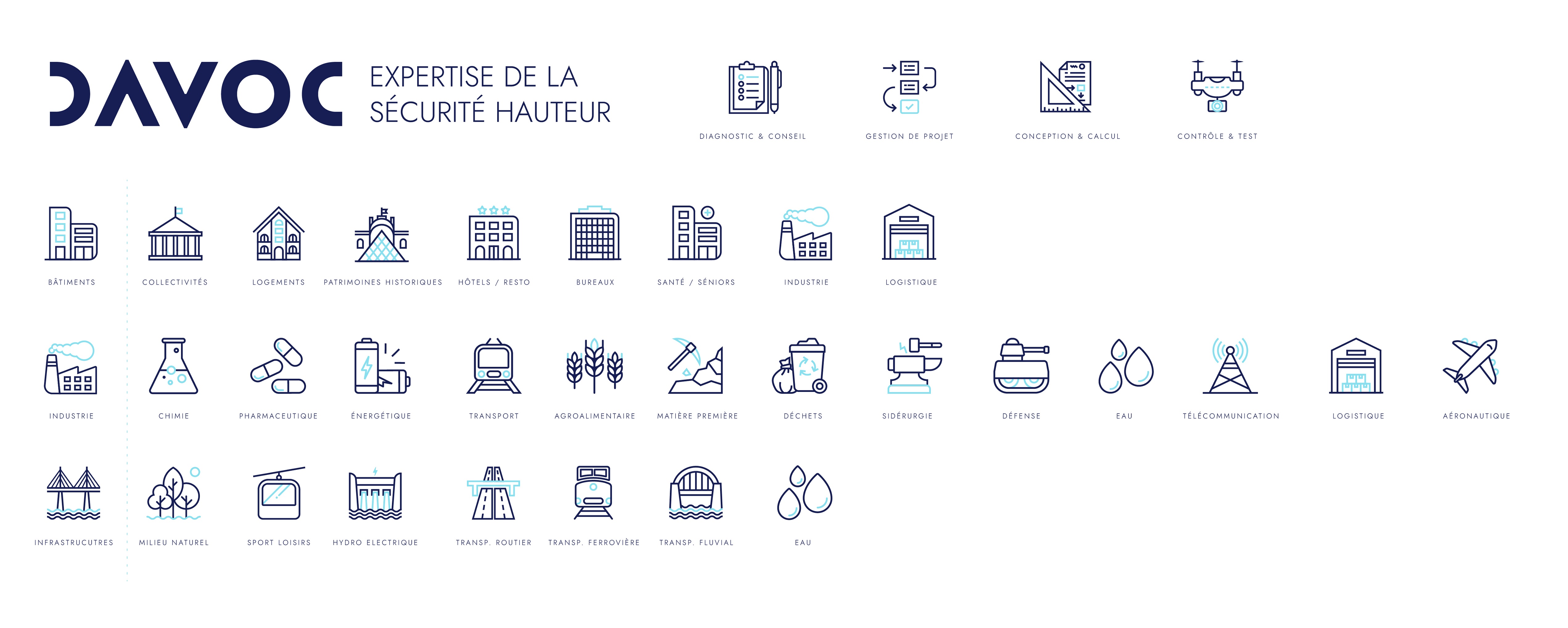 DAVOC est une société spécialisée dans l’ingénierie, le conseil et la gestion de projets liés à la prévention des risques de chute en hauteur. Nous accompagnons nos clients dans leur démarche de sécurité en leur proposant des solutions techniques adaptées aux exigences réglementaires. Nos ingénieurs interviennent dès la phase de conception jusqu’à la mise en œuvre technique des projets.